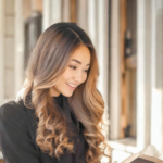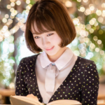 カフェで読書をする女性が、ゆったりとした雰囲気の中で本を手に取り、静かにページをめくりながら。周囲の人々が楽しそうにおしゃべりをしている中、彼女は自分だけの世界に没頭し、心地よい風と陽光を浴びながら読書を楽しんでいます。彼女の表情は穏やかで、本に集中している姿がとても美しい光景です。