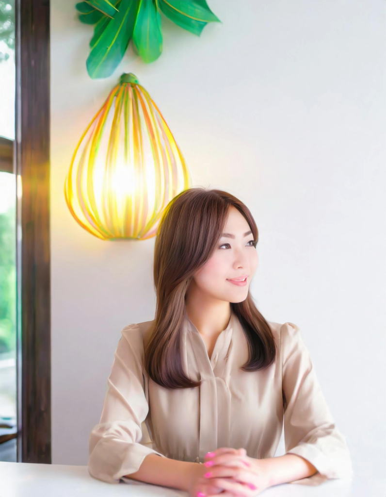 カフェで待つ女性が、落ち着いた雰囲気の中で時間を過ごしている様子が浮かびます。彼女はテーブルに腰掛け、手にしたカフェラテを飲みながら、周囲を見渡しています。表情は穏やかで、時折時計を見ながら待ち時間を過ごしています。カフェの中には心地よい音楽が流れ、暖かい雰囲気が漂っています。女性は落ち着いた様子で、待つことに焦りを感じていないようです。彼女の横顔は美しく、周囲の雰囲気と調和しています。